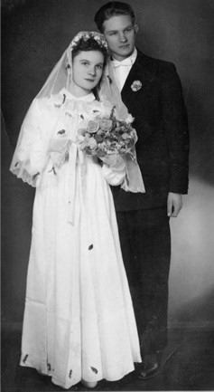 Nie miną rok znajomości, a rodzice zawarli związek małżeński. Ślub i wesele to niezwykle ważne wydarzenie w wiejskim środowisku, zwłaszcza gdy państwo młodzi są dziećmi dość zamożnych gospodarzy. Dziadkowie stanęli na wysokości zadania przygotowując wszystko już od dłuższego czasu, miedzy innymi tucząc na tę okazję trzodę z przeznaczeniem na swojskie wyroby. Przerobem zajmował się masaż Józef Polański, który zgodził się też przyjąć rolę starosty weselnego. To był człowiek niezwykle lubiany i szanowany przez naszą rodzinę i nie tylko. Każda z gospodyń poczuwała się niemal do obowiązku coś ze swej spiżarni przynieść – później, gdy któraś robiła swojej córce wesele, następował rewanż. Przygotowania rozpoczynano od wypieku chleba już w poniedziałek. Gotowe bochny, okrągłe, wyrośnięte z ciemną, chrupiącą skórką owijano w lśniąco białe, wykrochmalone obrusy i chowano w odpowiednie miejsce tak, by nie sczerstwiały. W następny dzień rozpoczynano pieczenie ciast. Dlaczego tak wcześnie? Bo wszystko wyrabiało się ręcznie, bez pomocy mikserów i wszelakich robotów kuchennych, a piekło w piecu chlebowym bez elektrycznych piecyków i prodiżów. Wszystkim kierowała i nadzorowała wynajęta szefowa, a pomagały ochotniczki – sąsiadki. Podobno pieczenie było tak intensywne, że o mały włos nie doszło do pożaru budynku spowodowanego zbyt dużo rozgrzanym kominem.. Na szczęście dziadek Franek – gospodarz weselny – zauważył to wychodząc do obory i zaalarmował kucharki, żeby wygasiły piec. Tak zapobiegł ogromnemu nieszczęściu.